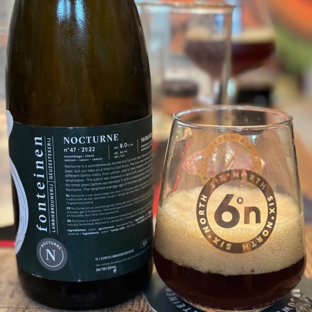 Nocturne is a spontaneously fermented full malt beer. Not your typical lambik beer, but our take on a Vlaams Oud Bruin. The beer was brewed with five different barley malts, from pilsner malt to dark roasted malts, and no wheat whatsoever.