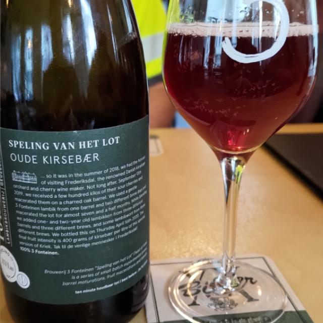 it was in the summer of 2018, we had the honour of visiting Frederiksdal, the renowned Danish kirsebaer orchard and cherry wine maker. Not long after, September 13th 2019, we received a few hundred kilos of their sour cherries and macerated them on a charred oak barrel. We used a gentle 3 Fonteinen lambik from one barrel and two different brew days and macerated the lot for almost seven and a half months. While blending, we added one- and two-year old lambikken from three different barrels and three different brews, and some lambikwort from three different brews.