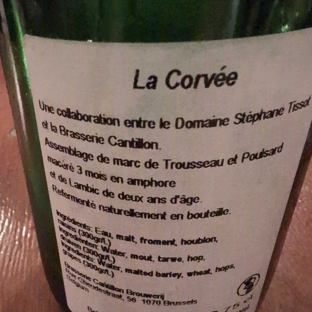 Une collaboration entre le Domaine StĂ©phane Tissot et la Brasserie Cantillon. Assemblage de marc de Trousseau et Poulsard macĂ©rĂ© 3 mois en amphore et de lambic de deux ans dâ€™Ă¢ge.