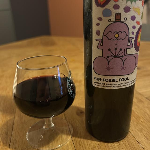 Cherry mead aged in Woodford Reserve bourbon barrels that previously held our BA imperial stout: NON-FOSSIL FUEL