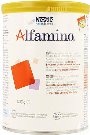Alfamino is een dieetvoeding voor zuigelingen met koemelkeiwitallergie waarbij een voeding met extensief gehydrolyseerde eiwitten onvoldoende effectief is en/ of bij meerdere voedselallergieën.