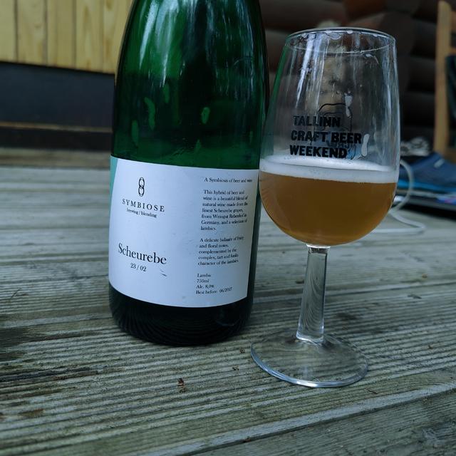 A Symbiosis of beer and wine This hybrid of beer and wine is a beautiful blend of natural wine made from the finest Scheurebe grapes, from Weingut Rebenhof in Germany, and a selection of lambics. A delicate balance of fruity and floral notes, complemented by the complex, tart and funky character of the lambics.